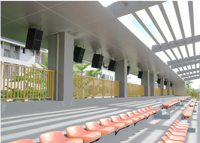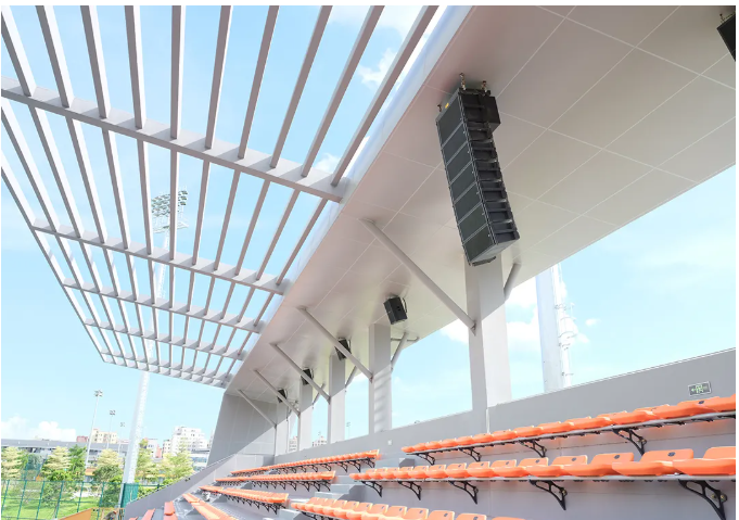 訓(xùn)練場(chǎng)地 本項(xiàng)目訓(xùn)練場(chǎng)地分為三個(gè),在系統(tǒng)設(shè)計(jì)期間,考慮到三個(gè)場(chǎng)地的設(shè)計(jì)結(jié)構(gòu)基本相同,最終采用相同的訓(xùn)練場(chǎng)館擴(kuò)聲系統(tǒng),使得整個(gè)深圳市青少年足球訓(xùn)練基地?cái)U(kuò)聲系統(tǒng),無(wú)論是從視覺上還是聽音效果上,都達(dá)到了完美的風(fēng)格和諧統(tǒng)一。 訓(xùn)練場(chǎng)地一和訓(xùn)練場(chǎng)地二的主擴(kuò)聲系統(tǒng)采用了32只MISSION的MSW系列全頻防水音箱。兩個(gè)場(chǎng)地各采用了16只MSW9012F和MSW9015F的防水線陣系統(tǒng),分布懸掛于兩個(gè)場(chǎng)地觀眾席上方覆蓋全場(chǎng),各搭配8臺(tái)MI1300的功率放大器,將MSW系列全頻防水音箱性能發(fā)揮到極致。 訓(xùn)練場(chǎng)地三采用了16只MSW9012F全頻防水音箱固定安裝于墻頂,MSW系列的安裝方式非常靈活,可根據(jù)不同的項(xiàng)目情況進(jìn)行靈活安裝,適合各類墻面安裝應(yīng)用,同時(shí)搭配8臺(tái)MI1300的功率放大器,使其聲音能量均勻覆蓋聽音區(qū)。