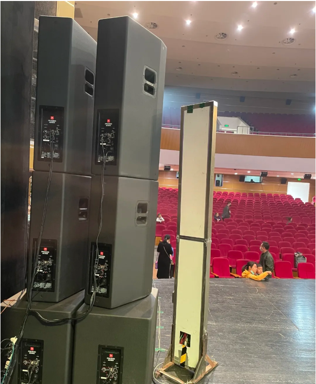 青島李滄劇院對演出擴聲設備進行了升級改造,經過千挑細選,擴聲系統(tǒng)最終選用源自美國JBL推出的新一代高端智能有源揚聲器系統(tǒng),其中包括4只 PRX835W 15寸三分頻全頻 與4只 PRX825W 雙15寸 兩分頻全頻作為主擴,搭配4只 PRX818XLFW 18寸擴展低頻超低音,分別部署在舞臺兩邊,另外采用4只PRX812W 12寸兩分頻全頻作為流動返送。