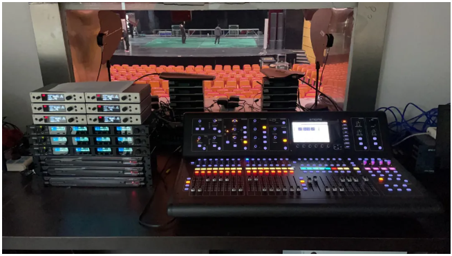 控制系統(tǒng)方面采用了英國Midas M32 Live數(shù)字調音臺以及2臺DL16舞臺接口箱,另外還配置了DIGIRATE(迪吉瑞)3臺 SP8遠程控制電源時序器,適用于需要按順序啟動的用電設備。