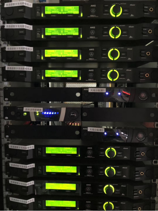 演藝廳舞臺左右兩側(cè)吊掛了各6只EV8寸線陣列覆蓋觀眾席,M15全頻音箱做下拉聲像揚聲器,B30超低音在舞臺下的預(yù)留孔洞中,臺唇位置設(shè)置了4只緊湊型的C5同軸揚聲器覆蓋前三排觀眾,4只M12多功能揚聲器作為舞臺流動返送,全部的音箱都由系統(tǒng)功率放大器PLM12K44驅(qū)動,PLM12K44是一款4通道可遠程監(jiān)控的DSP功率放大器,內(nèi)置EV的揚聲器預(yù)設(shè),便于使用者對揚聲器進行操控管理。演藝廳的擴聲系統(tǒng)還使用了16個通道的AKG DMS800數(shù)字無線系統(tǒng)。