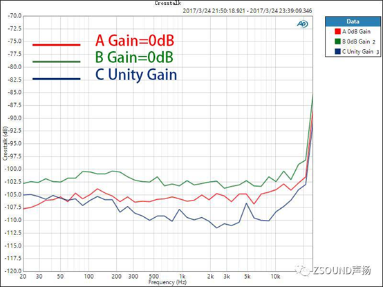 對于數字調音臺,我們不僅要關心話放增益在0dB時的THD+N比率,還需要了解到,話放增益在不同位置時的情況,因為這是使用中的實際情形。話放的增益在不同大小時,其引入的噪音和失真也是不同的,了解這一點對于用戶正確設置增益也很有參考意義。