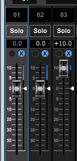 當(dāng)我把第三個推子的音量拉大時,由圖的GR表可知,第三個通道所分享到的增益隨著音量的增加而增加。