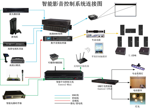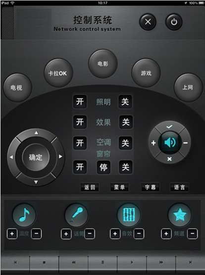 基本是以定制形式,通過常規中控主機實現IPAD、觸摸屏等控制功能,