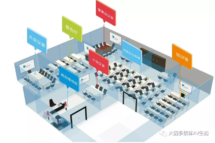 現(xiàn)代型會(huì)議室最基本的用途是討論會(huì)議、視頻會(huì)議、工作匯報(bào)等。因此需要滿足會(huì)議語(yǔ)言類(lèi)的擴(kuò)聲和視頻顯示的功能。同時(shí)如果作為分會(huì)場(chǎng)使用時(shí)需要滿足把主會(huì)場(chǎng)的音視頻信號(hào)實(shí)時(shí)的發(fā)送到會(huì)議室來(lái)。