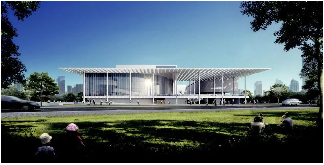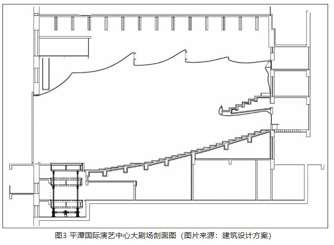 平潭國(guó)際演藝中心位于福建省平潭綜合實(shí)驗(yàn)區(qū),面朝開(kāi)闊的海灣景觀(guān)。建設(shè)用地面積約31 374.21 m2,建設(shè)總建筑面積 3 8 9 7 2 . 8 7 m 2 ,其中地上建筑面積26 907.21 m2,包含大劇場(chǎng)、多功能廳、公共文化中心和公共服務(wù)配套等,地下建筑面積12 065.55 m2。大劇場(chǎng)及多功能廳配置了先進(jìn)的聲光電設(shè)備,同時(shí),這兩個(gè)廳堂也都進(jìn)行了專(zhuān)業(yè)的建筑聲學(xué)設(shè)計(jì)。先進(jìn)的舞臺(tái)設(shè)備及優(yōu)良的建聲設(shè)計(jì),使得平潭國(guó)際演藝中心完全可以滿(mǎn)足國(guó)內(nèi)外大型歌劇、舞劇、綜藝、話(huà)劇、戲曲等節(jié)目的演出需求。平潭國(guó)際演藝中心的建成投用,提升了平潭國(guó)際旅游島的知名度和影響力,也將對(duì)兩岸文化藝術(shù)交流與合作發(fā)揮重要的促進(jìn)作用。圖1為平潭國(guó)際演藝中心效果圖。