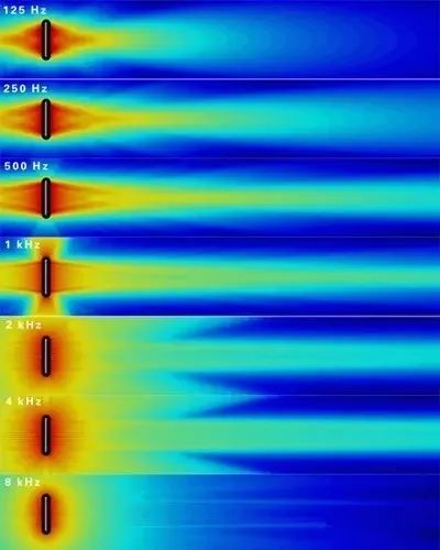 然而,隨著聲音傳播距離的增加,即使典型的定向揚(yáng)聲器(例如具有90°水平覆蓋角和90°垂直覆蓋角的號(hào)筒揚(yáng)聲器)也會(huì)遵從于反平方定律,像理論上的點(diǎn)聲源一樣進(jìn)行聲音的擴(kuò)散(即全向輻射)。