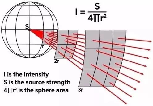 聲學(xué)中反平方定律的內(nèi)容是,聲強(qiáng)度的大小和聽(tīng)音位置與聲源之間距離呈平方反比。其結(jié)果是聽(tīng)音者距離點(diǎn)聲源的距離每增加一倍,聲壓衰減6dB。這是我們通常情況下使用的揚(yáng)聲器的表現(xiàn),雖然實(shí)際和理論會(huì)有很多細(xì)微差別。