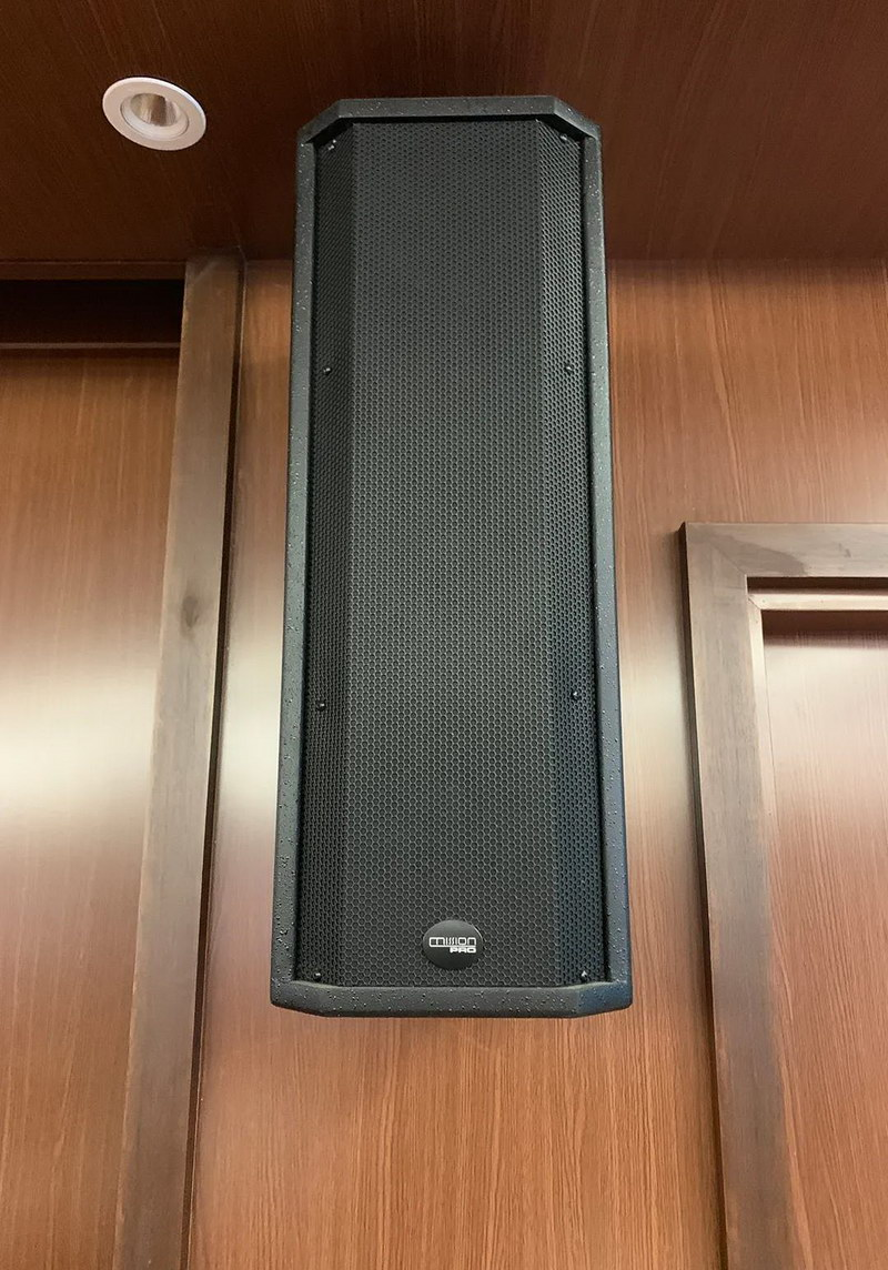 由于房間數(shù)量較多,根據(jù)每間的使用環(huán)境結(jié)合客戶需求及產(chǎn)品性能,最終為一層的學(xué)術(shù)報告廳、數(shù)字影像廳等共選用了20只C-208的8 "線性陣列音箱作為主擴(kuò)聲系統(tǒng),最大聲壓級高達(dá)135dB,所需的傾斜角度也擴(kuò)張到了最大使用范圍,內(nèi)部喇叭單元的安裝角度可滿足不同的場地使用需求,搭配C-15S的單15" 低頻音箱,該主擴(kuò)系統(tǒng)安全穩(wěn)定,操作簡易,系統(tǒng)結(jié)構(gòu)更科學(xué)完善,是大型會議的品質(zhì)之選。