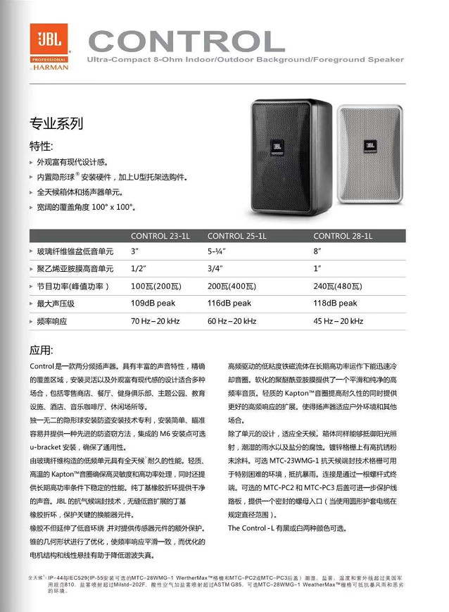 原設(shè)計要求擴聲系統(tǒng)一定要高保真,而且要有多聲道效果聲的要求,經(jīng)過學(xué)校老師的專業(yè)考察,最終選擇了JBL Control28-1L高保真緊湊型揚聲器,作為一款經(jīng)典的8寸揚聲器,音質(zhì)是第一要素,JBL獨有的8寸橡膠邊單元保證了揚聲器足夠的低頻下潛和反應(yīng)速度,1寸Kapton音圈的高音,安裝在一個耐沖擊性聚苯乙烯HIPS箱體里,能夠還原45Hz-20KHz的頻率響應(yīng)(-10dB),這個頻寬范圍在8寸揚聲器里絕無僅有。480W的峰值功率輸出能產(chǎn)生118dB peak最大聲壓級。